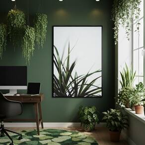 Quadro Decorativo Grama Ornamental 70x50cm Mold Branca