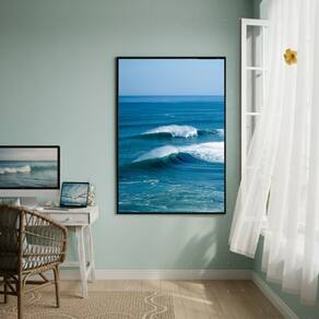 Quadro Decorativo Grandes Ondas-70x50cm - Cor: Moldura Preta