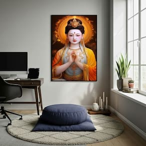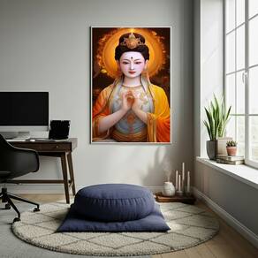 Quadro Decorativo Guanyin (Kwan Yin) - 70x50cm - Cor: Moldura Preta