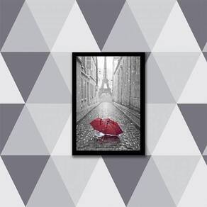 Quadro Decorativo Guarda Chuva Vermelho E Torre Eiffel 34x23