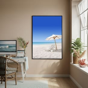 Quadro Decorativo Guarda-Sol Branco-70x50cm - Cor: Moldura Preta