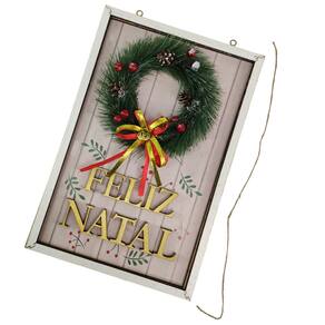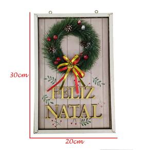 1 Quadro de Madeira Feliz Natal com mini guirlanda
