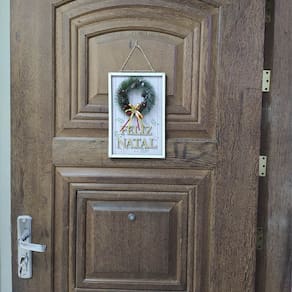 Surpreenda seus convidados e familiares com este toque especial de Natal em sua casa. Seja na sala de estar, no hall de entrada ou até mesmo no quarto, o Quadro de Madeira "Feliz Natal com Guirlanda" certamente irradiará a alegria das festas.