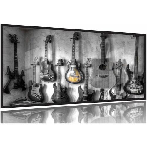 Quadro Decorativo Guitarras 130x60 Moldura Preta 2x2