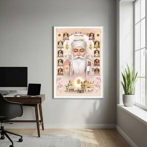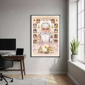 Quadro Decorativo Guru Nanak e os Dez Gurus Sikh - 70x50cm - Cor: Moldura Preta
