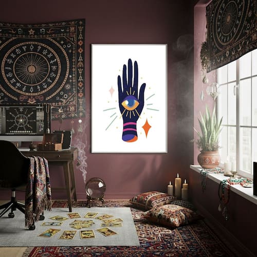 Quadro Decorativo Hamsá Cósmica 70x50cm Mold Branca