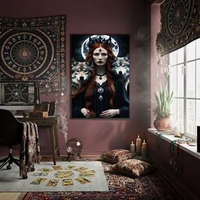 Quadro Decorativo Hécate - Deusa Grega da Magia - 70x50cm - Cor: Moldura Preta