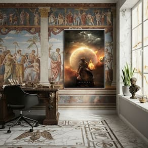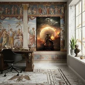 Quadro Decorativo Hefesto - Deus Grego do Fogo - 70x50cm - Cor: Moldura Branca