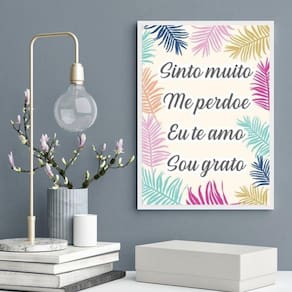 Quadro decorativo ho' oponopono mágico- folhas 24x18cm - com vidro Moldura: madeira branca Informações do produto tire todas as suas dúvidas no descritivo abaixo: decoração para quarto, sala, cozinha, escritório, área gourmet e muito mais. Chega de paredes vazias medidas - cada peça tem 24x18cm a5 . Material do papel - papel fotográfico brilhante de altíssima resolução acabamento - todos os quadros são acompanhados de vidro para proteção da imagem. - moldura em madeira maciça na cor preta ou branca conforme produto escolhido e pendurador . - os quadros são embalados de forma segura com plástico bolha com camada dupla de acordo com o tamanho dos quadros. Garantia - garantia de 3 meses. Meu quadro chegou. Como posso fixá-lo Você precisa apenas de um martelo e um prego, pois os quadros já vão acompanhados de penduradores. Esta é a forma mais indicada. Como posso limpar meu quadro A limpeza é feita como um móvel comum da sua casa. Apenas um pano seco ou espanador são suficientes para tal Ean: 7897190944312