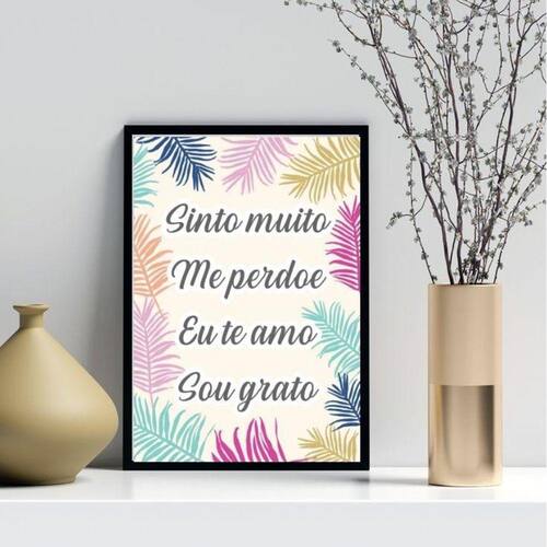 Quadro decorativo ho' oponopono mágico- folhas 33x24cm Moldura: madeira preta Informações do produto tire todas as suas dúvidas no descritivo abaixo: decoração para quarto, sala, cozinha, escritório, área gourmet e muito mais. Chega de paredes vazias medidas - cada peça tem 33x24cm a4 . Material do papel - papel fotográfico brilhante de altíssima resolução acabamento - todos os quadros são acompanhados de uma película de acetato para proteção da imagem. - os quadros são embalados de forma segura com plástico bolha com camada dupla de acordo com o tamanho dos quadros. Garantia - garantia de 3 meses. Meu quadro chegou. Como posso fixá-lo Você precisa apenas de um martelo e um prego, pois os quadros já vão acompanhados de penduradores. Esta é a forma mais indicada. Caso prefira, você pode utilizar uma fita dupla face neste caso, sugerimos de alta qualidade para evitar que descole e seu quadro caia . Como posso limpar meu quadro A limpeza é feita como um móvel comum da sua casa. Apenas um pano seco ou espanador são suficientes para tal Ean: 7894495209795