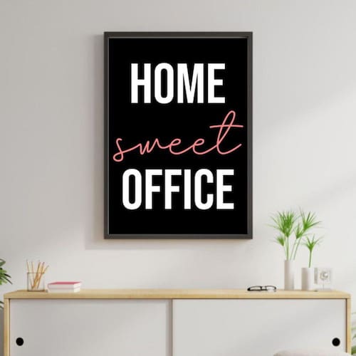 Quadro Decorativo Home Sweet Office - Tamanho: A4 (20 x 30) / Acabamento: Película de acetato / Moldura: Madeira preta
