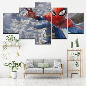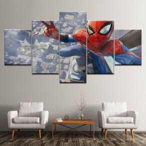 Quadro Decorativo Homem Aranha0 5 peças 130x65 cm em tecido
