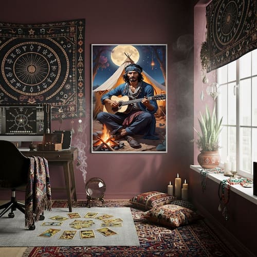 Quadro Decorativo Homem Cigano Com Violão 70x50 Mold Branca