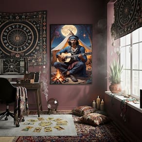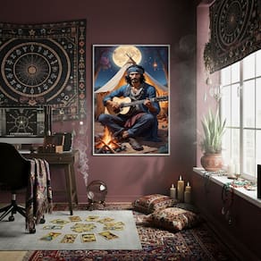 Quadro Decorativo Homem Cigano Com Violão 70x50 Mold Preta
