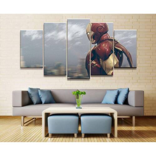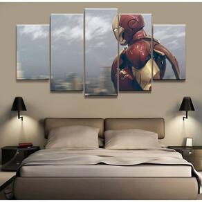 Quadro Decorativo Homem de ferro A 5 peças 130x65 cm em tec