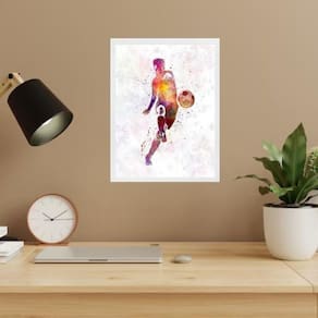 Quadro decorativo homem jogando futebol 33x24cm Cor: moldura branca Informações do produto tire todas as suas dúvidas no descritivo abaixo: decoração para quarto, sala, cozinha, escritório, área gourmet e muito mais. Chega de paredes vazias medidas - cada peça tem 33x24cm a4 . Material do papel - papel fotográfico brilhante de altíssima resolução acabamento - todos os quadros são acompanhados de uma película de acetato para proteção da imagem. - os quadros são embalados de forma segura com plástico bolha com camada dupla de acordo com o tamanho dos quadros. Garantia - garantia de 3 meses. Meu quadro chegou. Como posso fixá-lo Você precisa apenas de um martelo e um prego, pois os quadros já vão acompanhados de penduradores. Esta é a forma mais indicada. Caso prefira, você pode utilizar uma fita dupla face neste caso, sugerimos de alta qualidade para evitar que descole e seu quadro caia . Como posso limpar meu quadro A limpeza é feita como um móvel comum da sua casa. Apenas um pano seco ou espanador são suficientes para tal