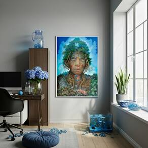 Quadro Decorativo Homem Natureza - 70x50cm - Cor: Moldura Preta