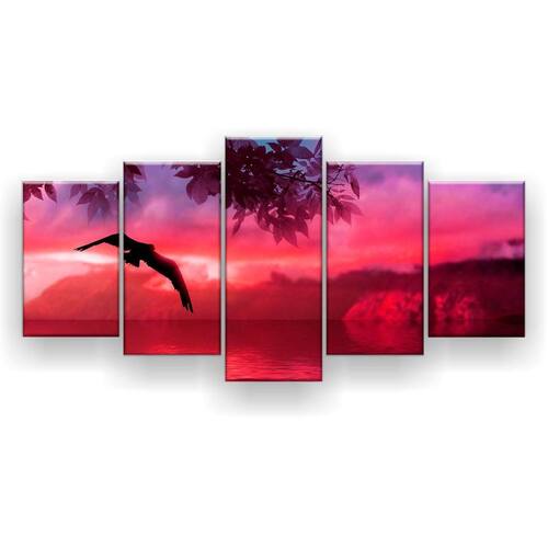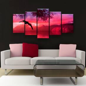 Quadro Decorativo Horizonte Rosa 129x61 Mosaico 5 Peças