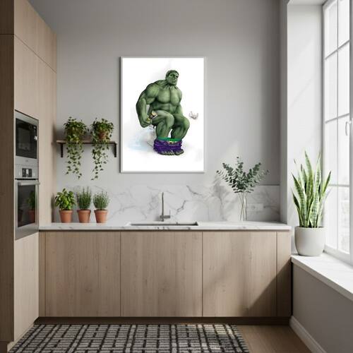 Quadro Decorativo Hulk com Problemas - 70x50cm - Cor: Moldura Branca