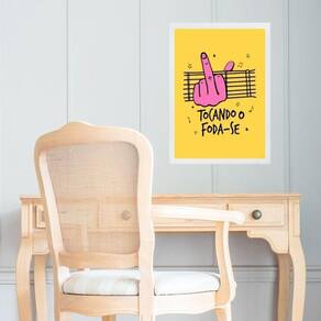 Quadro decorativo humor - tocando o f 33x24cm Cor: moldura branca Informações do produto tire todas as suas dúvidas no descritivo abaixo: decoração para quarto, sala, cozinha, escritório, área gourmet e muito mais. Chega de paredes vazias medidas - cada peça tem 33x24cm a4 . Material do papel - papel fotográfico brilhante de altíssima resolução acabamento - todos os quadros são acompanhados de uma película de acetato para proteção da imagem. - os quadros são embalados de forma segura com plástico bolha com camada dupla de acordo com o tamanho dos quadros. - de 3 meses. Meu quadro chegou. Como posso fixá-lo Você precisa apenas de um martelo e um prego, pois os quadros já vão acompanhados de penduradores. Esta é a forma mais indicada. Caso prefira, você pode utilizar uma fita dupla face neste caso, sugerimos de alta qualidade para evitar que descole e seu quadro caia . Como posso limpar meu quadro A limpeza é feita como um móvel comum da sua casa. Apenas um pano seco ou espanador são suficientes para tal Marca: Não Informado Ean: 7908991703814