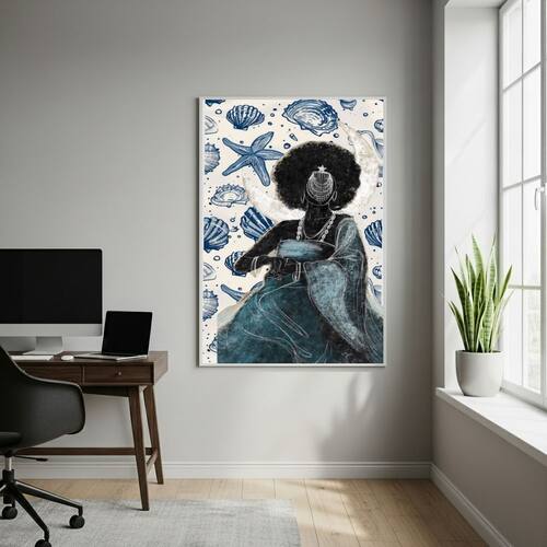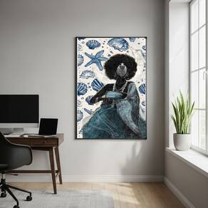 Quadro Decorativo Iemanjá - Candomblé - 70x50cm - Cor: Moldura Preta