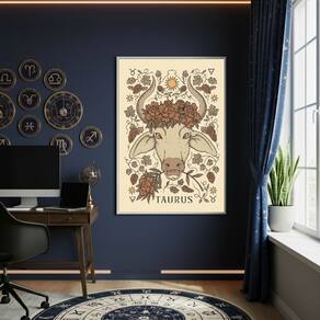 Quadro Decorativo Ilustração De Touro 70x50cm Mold Preta