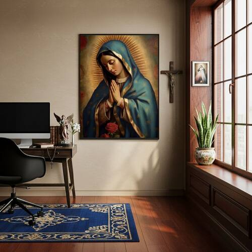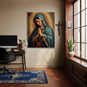 Quadro Decorativo Imaculado Coração De Maria - 70x50cm - Cor: Moldura Preta