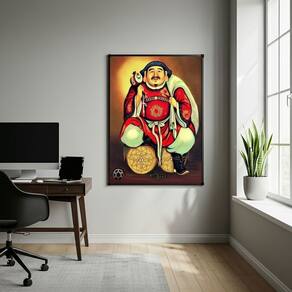Quadro Decorativo Indiano Daikoku - 70x50cm - Cor: Moldura Preta