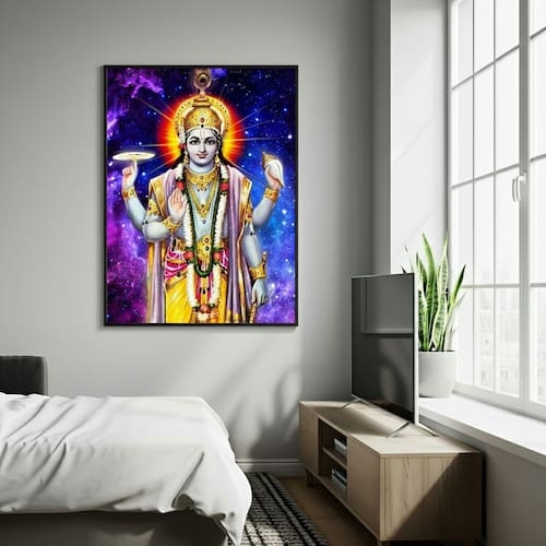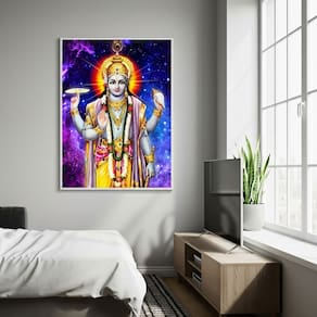 Quadro Decorativo Indiano Vishnu - 70x50cm - Cor: Moldura Branca