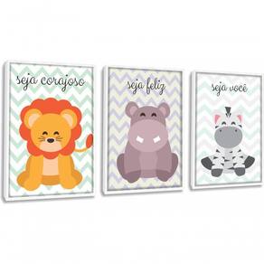 Quadro Decorativo Infantil Animais Com Moldura Branco