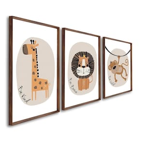 Quadro Decorativo Infantil Animais da Selva com 3 Telas de Parede para Quarto Sala Brinquedoteca 60c Marrom