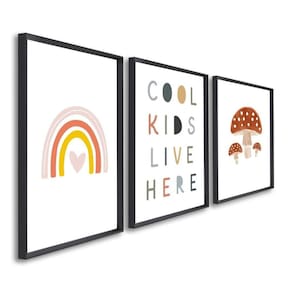 Quadro Decorativo Infantil Crianças Sol e Arco Íris com 3 Telas de Parede para Quarto Sala Brinquedo Preto