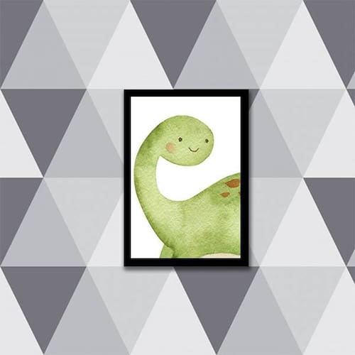 Quadro Decorativo Infantil Dinossauro Verde 45x34cm - com vidro - Moldura: Madeira preta