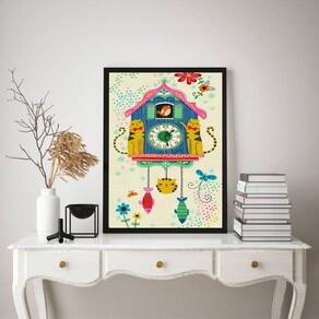 Quadro decorativo infantil relógio cuco 24x18cm - com vidro