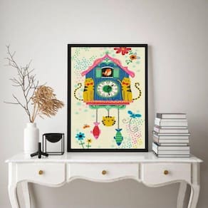 Quadro decorativo infantil relógio cuco 45x34cm - com vidro Moldura: madeira preta Informações do produto tire todas as suas dúvidas no descritivo abaixo: decoração para quarto, sala, cozinha, escritório, área gourmet e muito mais. Chega de paredes vazias medidas - cada peça tem 45x34cm a3 . Material do papel - papel fotográfico brilhante de altíssima resolução acabamento - todos os quadros são acompanhados de vidro para proteção da imagem. - moldura em madeira maciça na cor preta e pendurador . - os quadros são embalados de forma segura com plástico bolha com camada dupla de acordo com o tamanho dos quadros. Garantia - garantia de 3 meses. Meu quadro chegou. Como posso fixá-lo Você precisa apenas de um martelo e um prego, pois os quadros já vão acompanhados de penduradores. Esta é a forma mais indicada. Como posso limpar meu quadro A limpeza é feita como um móvel comum da sua casa. Apenas um pano seco ou espanador são suficientes para tal Ean: 7899923192564