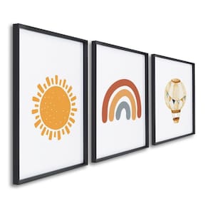 Quadro Decorativo Infantil Sol Balão e Arco Íris com 3 Telas Cm de Parede para Quarto Sala Brinquedo Preto