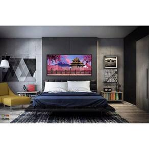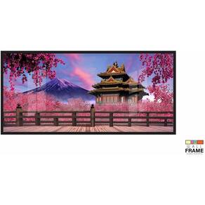 Quadro Decorativo Japão Sakura Fuji 130x60 Moldura Preta 2x2
