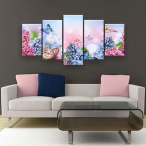 Quadro Decorativo Jardim De Borboletas 129x61 Sala Quarto