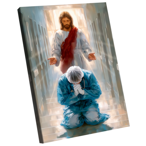 Quadro Decorativo Jesus Abençoando o Médico Borda Infinita - 150x100cm -