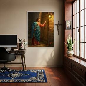 Quadro Decorativo Jesus Batendo a Porta - 70x50cm - Cor: Moldura Branca