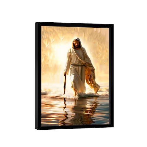 Quadro Decorativo Jesus Caminhando Sobre as Águas Moldura Preta - 60x40cm -
