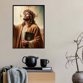 Quadro decorativo jesus com bíblia 24x18cm - com vidro Moldura: madeira preta Informações do produto tire todas as suas dúvidas no descritivo abaixo: decoração para quarto, sala, cozinha, escritório, área gourmet e muito mais. Chega de paredes vazias medidas - cada peça tem 24x18cm a5 . Material do papel - papel fotográfico brilhante de altíssima resolução acabamento - todos os quadros são acompanhados de vidro para proteção da imagem. - moldura em madeira maciça na cor preta ou branca conforme produto escolhido e pendurador . - os quadros são embalados de forma segura com plástico bolha com camada dupla de acordo com o tamanho dos quadros. Garantia - garantia de 3 meses. Meu quadro chegou. Como posso fixá-lo Você precisa apenas de um martelo e um prego, pois os quadros já vão acompanhados de penduradores. Esta é a forma mais indicada. Como posso limpar meu quadro A limpeza é feita como um móvel comum da sua casa. Apenas um pano seco ou espanador são suficientes para tal