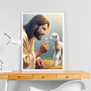 Quadro decorativo jesus com cordeirinho 33x24cm - com vidro Cor: moldura branca Informações do produto tire todas as suas dúvidas no descritivo abaixo: decoração para quarto, sala, cozinha, escritório, área gourmet e muito mais. Chega de paredes vazias medidas - cada peça tem 33x24cm a4 . Material do papel - papel fotográfico brilhante de altíssima resolução acabamento - todos os quadros são acompanhados de vidro para proteção da imagem. - moldura em madeira maciça na cor preta ou branca conforme produto escolhido e pendurador . - os quadros são embalados de forma segura com plástico bolha com camada dupla de acordo com o tamanho dos quadros. Garantia - garantia de 3 meses. Meu quadro chegou. Como posso fixá-lo Você precisa apenas de um martelo e um prego, pois os quadros já vão acompanhados de penduradores. Esta é a forma mais indicada. Como posso limpar meu quadro A limpeza é feita como um móvel comum da sua casa. Apenas um pano seco ou espanador são suficientes para tal
