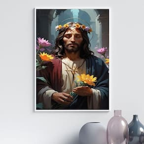 Quadro decorativo jesus com flores 24x18cm Moldura: madeira preta Informações do produto tire todas as suas dúvidas no descritivo abaixo: decoração para quarto, sala, cozinha, escritório, área gourmet e muito mais. Chega de paredes vazias medidas - cada peça tem 24x18cm a5 . Material do papel - papel fotográfico brilhante de altíssima resolução acabamento - todos os quadros são acompanhados de uma película de acetato para proteção da imagem. - os quadros são embalados de forma segura com plástico bolha com camada dupla de acordo com o tamanho dos quadros. - de 3 meses. Meu quadro chegou. Como posso fixá-lo Você precisa apenas de um martelo e um prego, pois os quadros já vão acompanhados de penduradores. Esta é a forma mais indicada. Caso prefira, você pode utilizar uma fita dupla face neste caso, sugerimos de alta qualidade para evitar que descole e seu quadro caia . Como posso limpar meu quadro A limpeza é feita como um móvel comum da sua casa. Apenas um pano seco ou espanador são suficientes para tal Marca: Não Informado Ean: 7893577576671