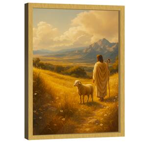 Quadro Decorativo Jesus e Cordeiro no Pasto Moldura Preta - 118x78cm -