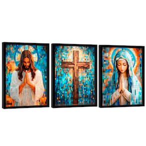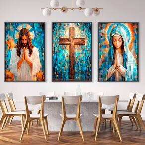 Quadro Decorativo Jesus e Maria em Grid Art Borda Infinita - 84x54cm -