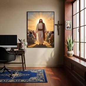 Quadro Decorativo Jesus Iluminado - 70x50cm - Cor: Moldura Branca