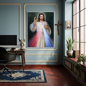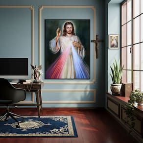 Quadro Decorativo Jesus Misericordioso - 70x50cm - Cor: Moldura Preta