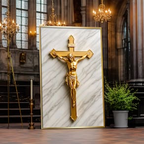 Quadro Decorativo Jesus na Cruz Dourado Moldura Dourada - 118x78cm -