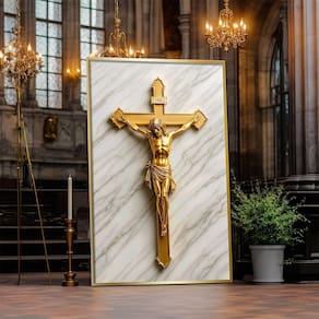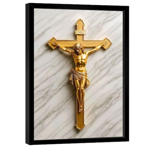 Quadro Decorativo Jesus Na Cruz Dourado Quadro Decorativo Jesus na Cruz Dourado Moldura Preta - 84x54cm - Especificações